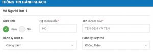 Anh/Chị nhập Họ tên Hành Khách theo đúng biểu mẫu: Họ – Tên và Tên Đệm