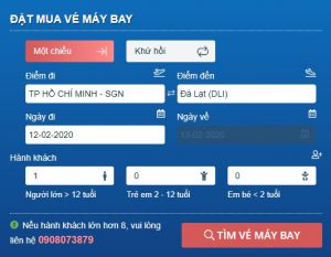 Lựa chọn vé khứ hồi hay một chiều. Điền đầy đủ thông tin vào From tìm kiếm, sau đó nhấn nút “TÌM VÉ MÁY BAY”